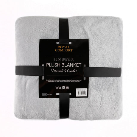 Royal Comfort Plush Blanket Throw Warm Soft Super Soft Large 220cm x 240cm - Light Grey