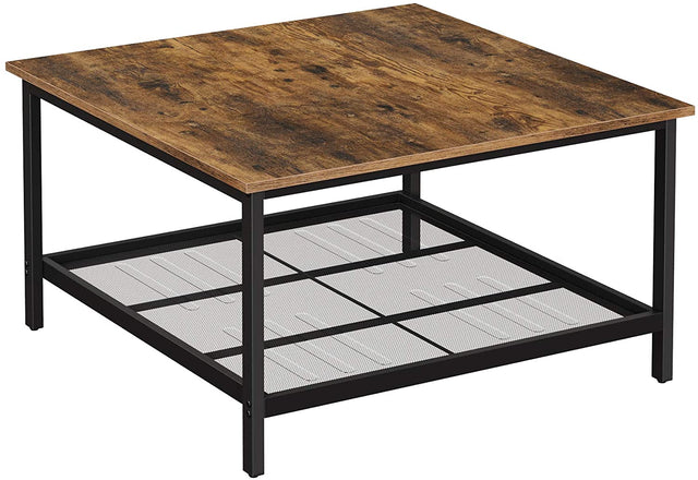 Robust Coffee Table Steel Frame and Mesh Storage Shelf, Rustic Brown and Black