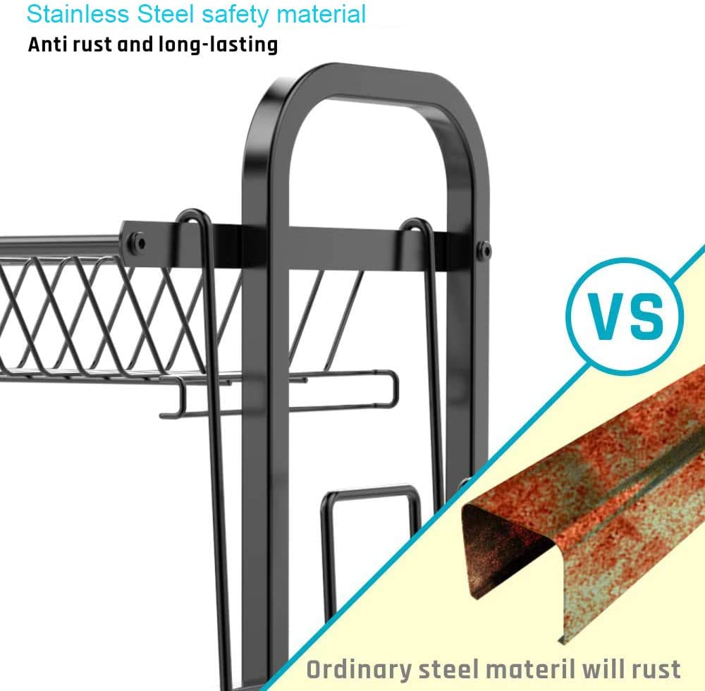 Stainless Steel 2-Tier Dish Drying Rack with Utensil Holder, Cutting Board Holder and Dish Drainer for Kitchen Counter (Black)