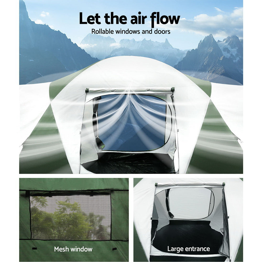Family Camping Tent 12 Person Hiking Beach Tents (3 Rooms) Green