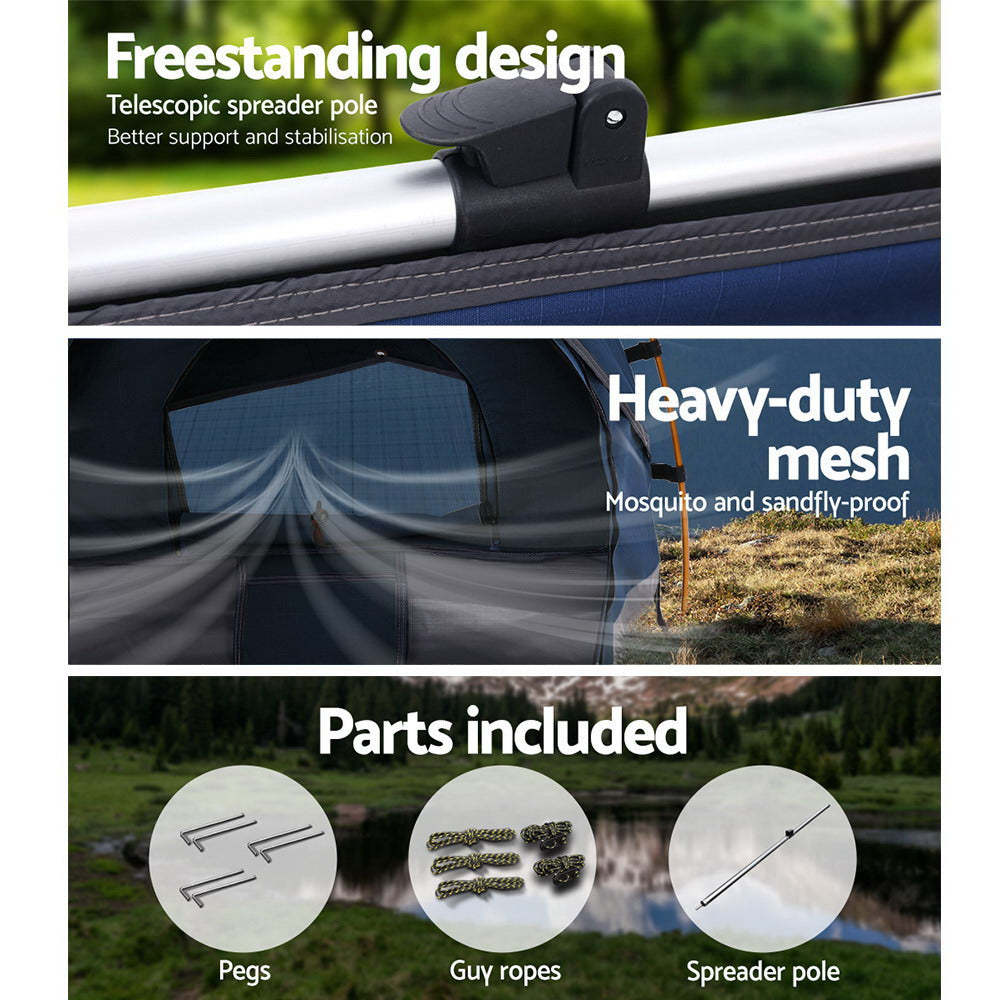 King Single Swag Camping Swags Canvas Free Standing Dome Tent Blue